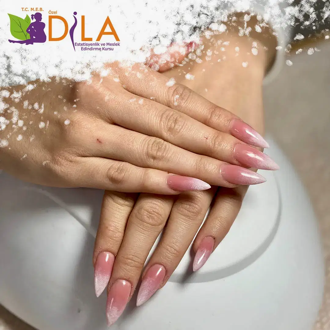 MEB onaylı 190 saat süreli El-Ayak Bakımları ve Protez Tırnak Kursu'muz %85 uygulamalı olarak işlenmektedir. Temel teori dersleri sonrası vakit kaybetmeden uygulama derslerine geçilmekte ve öğrencilerimizin el pratikleri geliştirilmektedir. Uygulamaları birçok kez tekrar etme fırsatı bulan öğrencilerimiz sektöre hazır halde mezun olurlar ve kurs sonrası hemen çalışmaya başlayabilirler.